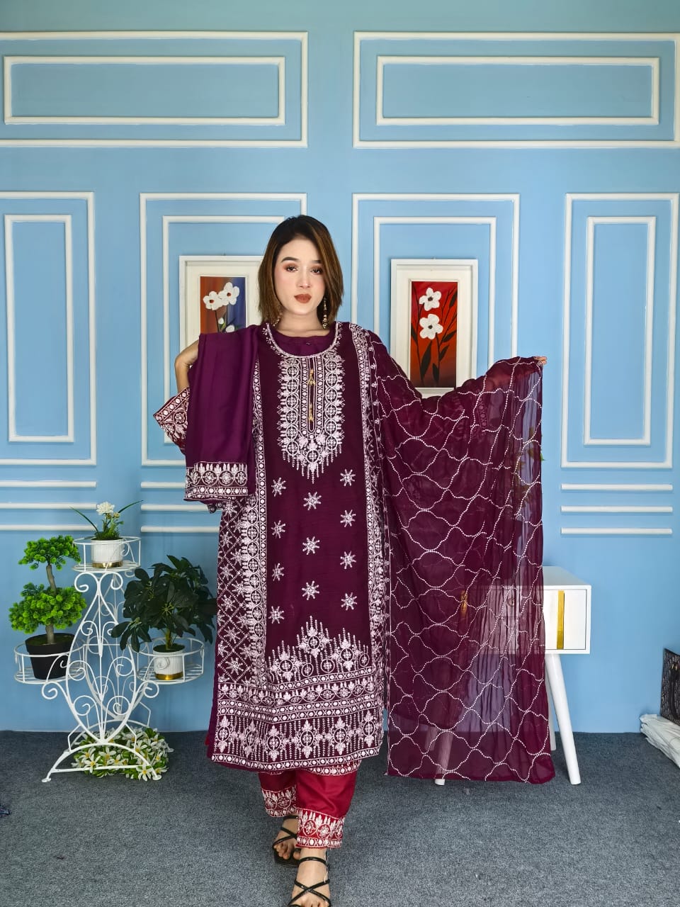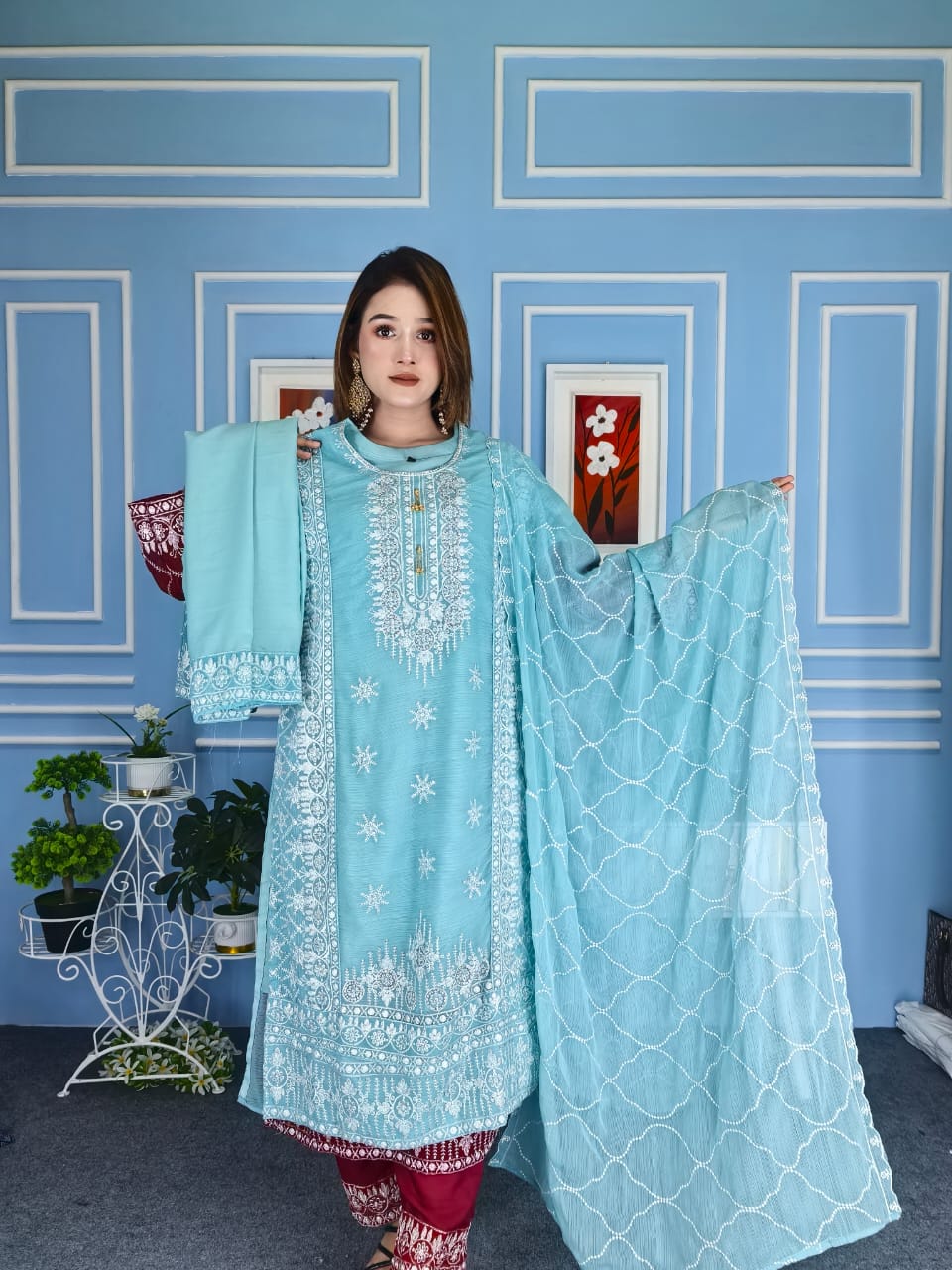 সফট হোয়াইট গোল্ড জর্জেট ড্রেস জামাতে স্টোন এমব্রয়ডারি কাজ করা