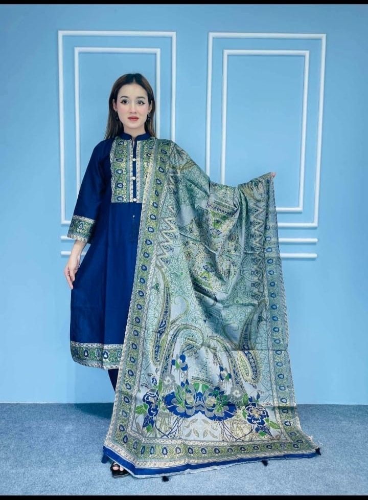 জামা গলা এবং হাতার প্যানেলে অ্যান্টি কটনের উপর স্টোন ওয়ার্ক🔥 সফট লিনেন কটন থ্রি-পিস