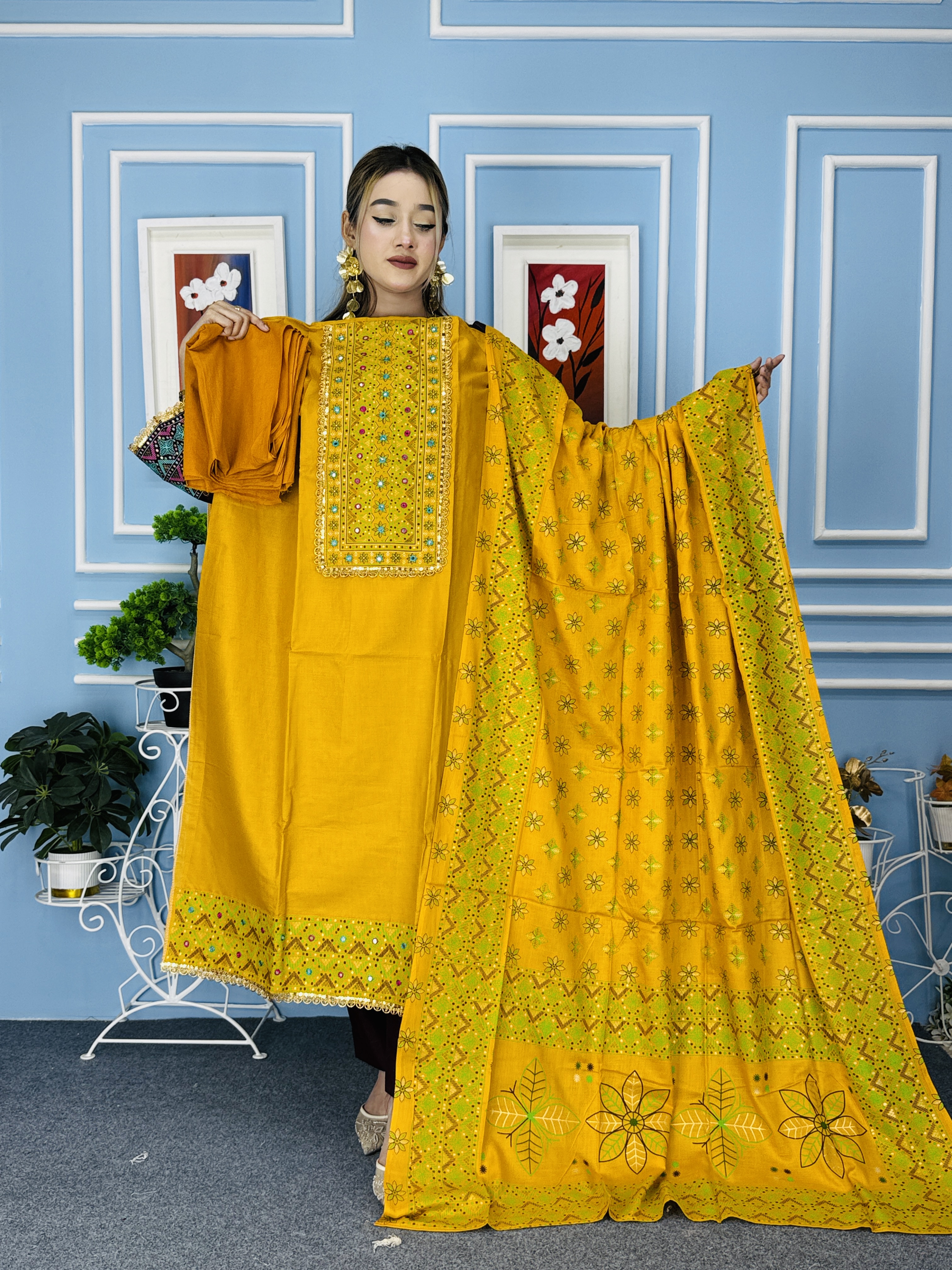 100% এসি কটন,,, জামদানি কটনের প্যানেল করা গলায় স্টোন ওয়ার্ক করা